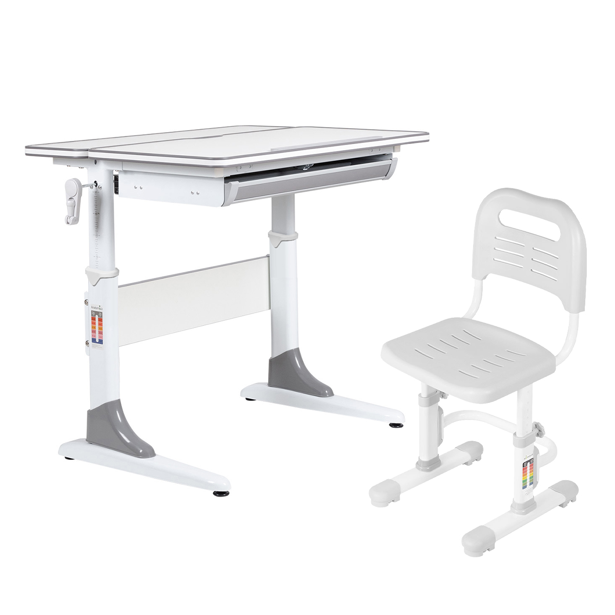 Эргономичный комплект Anatomica Study-80 состоит из растущей парты Anatomica Study-80 и растущего стула Anatomica Lux-01, Anatomica Lux-02, Anatomica Ergo duos или со стулом Anatomica Ergo Chair (на выбор), уже идущие в составе. Главной особенностью комплекта является возможность "роста" вместе с ребенком. Комплект подойдет как для дошкольника, так и школьника, который учится в начальной или средней школе. Также парта оснащена выдвижным ящиком для правильной организации комфортного рабочего места - в такой ящик можно положить тетради, книги, ручки, карандаши и прочие канцелярские принадлежности. При установке парты на неровный пол предусмотрены специальные нивелирующие подпятники, которые помогут парте не шататься. Важной особенность парты является и возможность занятий как сидя, так и стоя, благодаря наклонной столешнице - она может изменять свой угол наклона от 0 до 70 градусов. За такой столешницей можно заниматься как письмом, чтением и черчением, так и рисованием, сидя или стоя, что особенно полезно для осанки и правильного кровообращения. Не скатываться тетрадям или книге под наклоном поможет специальный бортик-ограничитель, расположенный в нижней части столешницы. Антибликовое покрытие защищает глаза ребенка от усталости и отражений света, а сама столешница надежно защищена от повреждений. Закругленные края парты исключают возможность ранения ребенка.